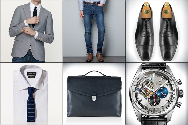 Atuendo clásico de este invierno; americana de pata de gallo y corbata de punto. Vaqueros para no darle excesiva formalidad al tema y unos Audley de Crockett & Jones y un maletín de Ferragamo para poner el toque de clase. Normalmente, en lo que refiere a relojes, en looks en los que predomina el azul me suelo inclinar por el Portugués también en azul, pero diría que este 1969 de Zenith es un digno sustituto para hoy. No os olvidéis del pañuelo de bolsillo, claro.